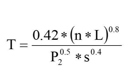 T = travel time in minutes